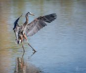 Στην επιφάνεια του νερού, η κίνηση του μεγάλου γαλάζιου ερωδιού μοιάζει με χορευτική φιγούρα: τα φτερά απλώνονται αρμονικά, τα πόδια αγγίζουν ελαφρά το κύμα, η αντανάκλαση σχηματίζει έναν δεύτερο, σιωπηλό χορευτή. Κι όμως, αυτό που μοιάζει με παράσταση είναι στην ουσία ένα τέχνασμα. Ο ερωδιός σηκώνει τα φτερά του για να σκιάσει το νερό· η σκιά σπάει τις αντανακλάσεις να δει καθαρότερα τα ψάρια που κινούνται από κάτω.Ο μεγάλος γαλάζιος ερωδιός (Ardea herodias), με ύψος που φτάνει το ένα μέτρο ... διαβάστε περισσότερα - Αἰσώπου Μῦθοι – Ο γεωργός και τα παιδιά του