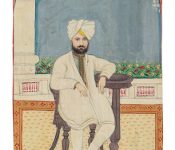 This simple portrait of a Sikh gentleman was painted in the early part of the 20th century. Works like this were typically commissioned not by princes or the wealthy elite, but by economically comfortable urban Indians and “babus”… Indian clerks who worked in British offices, particularly those proficient in English. This class of Indians often considered themselves a notch above the average citizen and sought to project their social status through portraiture. In this painting, the subject is depicted surrounded by European ... διαβάστε περισσότερα