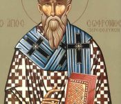 Άγιος Σωφρόνιος Πατριάρχης Ιεροσολύμων Εορτάζει στις 11 Μαρτίου εκάστου έτους. Έσπευδε τηρείν και κεραίαν του νόμου, Ο Σωφρόνιος, ου παρ᾽ ουρανοίς κέρας. Ενδεκάτη σαόφρων έδυ Σωφρόνιος παρά τύμβον. Βιογραφία Ο Άγιος Σωφρόνιος γεννήθηκε στην Δαμασκό της Συρίας περί το έτος 580 μ.Χ. και ήταν υιός ευσεβών και ενάρετων γονέων, του Πλινθά και της Μυρούς. Λόγω της καταγωγής του αποκαλείται και Δαμασκηνός. Κατά την νεαρή του ηλικία επισκέφθηκε τους Αγίους Τόπους και εκάρη μοναχός στη μονή του αββά Θεοδοσίου, όπου ... διαβάστε περισσότερα - Μας λέτε σεις οι λατινόφρονες οικουμενιστές, ὅταν ἀποφασίζει ἡ Ἐκκλησία, τὸ ποίμνιο ἀκολουθεῖ.