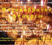 Όσο όμως προχωράμε, τόσο περισσότερο συνειδητοποιεί ο άνθρωπος την αμαρτία του ενώπιον του Θεού — βλέπει στη χριστιανική πίστη την οδό προς την αναγέννηση και τη συγχώρεση των αμαρτιών. Στα χρόνια που μας φέρνουν πιο κοντά στον τάφο, έχοντας αφαιρέσει τα δελεαστικά και απατηλά πέπλα από όλα όσα είναι αμαρτωλά και εγκόσμια, έχοντας αναγνωρίσει την παραχάραξη των αμαρτωλών χαρών, την απάτη, το στολίδι σε όλα όσα μας δελεάζουν με αμαρτωλές χαρές ως θησαυρό των εγκόσμιων απολαύσεων, έχοντας υποφέρει, έχοντας καεί ... διαβάστε περισσότερα - ΤΟ ΨΥΧΟΣΑΒΒΑΤΟ ΤΗΣ ΑΠΟΚΕΡΩ (…την Παρασκευή 13/2 στον Εσπερινό & το Ψυχοσάββατο 14/2 στην Θεία Λειτουργία !!!) ΔΕΙΤΕ…