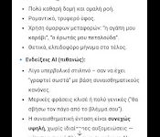 Καλημέρα σας! Χτες ξεκίνησα ένα πείραμα, μικρής φυσικά εμβέλειας, για να δω αν η ΑΙ μπορεί να γίνει αντιληπτή σε σύγκριση με ένα ανθρώπινο δημιουργημα. Τα αποτελέσματα ήταν αρκετά ενδιαφέροντα και ευχαριστώ πολύ όσους μπήκαν στον κόπο να συμμετάσχουν. Πάμε να δούμε λοιπόν τα αποτελέσματα.-Συμμετείχαν 11 αναγνώστες στο blog και 1 στο Facebook.- Στη συντριπτική τους πλειοψηφία, οι αναγνώστες αναγνώρισαν την ανθρώπινη γραφή. 10/12 συμμετέχοντες αποφάσισαν πως το ΠΡΩΤΟ ποίημα πρέπει να είναι το δικό μου και είχαν δίκιο (Τίτλος: ΣΑΝ ... διαβάστε περισσότερα