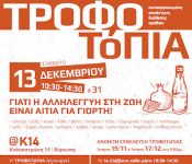 Συμμετέχουμε στη Τροφοτόπια και στη διοργάνωση της για να ενισχύσουμε τη δράση της, ενάντια σε κάθε καρτέλ και μεσάζοντα. Αγωνιζόμαστε για το δικαίωμα στη τροφή και στη πόλη!Σάββατο 13/12, από το πρωί 10:30 - 14:30 K14 - ΚΟΛΟΚΟΤΡΩΝΗ 14 Βύρωνας αλεύρι / ψωμί / ρύζι / αυγά / λάδι / φέτα/ όσπρια / πίτες / μέλι / ζυμαρικά / τσίπουρο / μανιτάρια/ λαχανικά / ξηροί καρποί / καθαριστικάΓΙΑΤΙ Η ΑΛΛΗΛΕΓΓΥΗ ΣΤΗ ΖΩΗ ΕΙΝΑΙ ΑΙΤΙΑ ΓΙΑ ΓΙΟΡΤΗ! ΑΝΟΙΧΤΗ ΣΥΝΕΛΕΥΣΗ ΤΡΟΦΟΤόΠΙΑΣΤετάρτη 17/12 9:00μμ, ΒΚΠ ... διαβάστε περισσότερα - 26o αντιρατσιστικό φεστιβάλ Αθήνας 4-5-6/7 πάρκο Γουδή