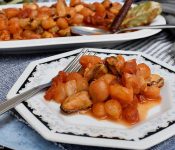 For English, scroll down 'Εφτιαξα ένα πεντανόστιμο φαγητό και το λέω με όλη την επίγνωση των λέξεών μου! Τρώμε συχνά μύδια αλλά πρώτη φορά τα έφτιαξα έτσι. Τη συνταγή τη βρήκα πάλι σε ένα από τα χαρτάκια που μάζευε η μανούλα μου από τα τηλεπεριοδικά. Από ότι λέει στη συνταγή ο συνδυασμός μυδιών και αμυγδάλων βοηθάει στο να είναι το γεύμα εκτός από νόστιμο, πλούσιο σε βιταμίνες και μέταλλα. Εγώ δεν ξέρω πολλά από αυτά, ξέρω όμως ότι αυτό το φαγητό είναι νοστιμότατο. ... διαβάστε περισσότερα - Η Πιο Αφράτη Σπιτική Νηστίσιμη Λαγάνα με Ταχίνι – Το Μυστικό για την Καθαρά Δευτέρα!