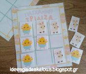 Για το φετινό Πάσχα ετοιμάσαμε ένα εκτυπώσιμο, που μπορεί να γίνει ένα χαριτωμένο και οικονομικό δωράκι για τους μαθητές και τις μαθήτριες των μικρών τάξεων του Δημοτικού. Εκτυπώνουμε το αρχείο , που μπορούμε να κατεβάσουμε δωρεάν από τον σύνδεσμο. Πλαστικοποιούμε τη βάση της τρίλιζας και τις φιγούρες για το παιχνίδι. Βάζουμε τα κομμάτια σε διάφανα σακουλάκια. Σε κάθε παιχνίδι βάζουμε πέντε κοτοπουλάκια και πέντε προβατάκια. Κλείνουμε με ταινία στο πίσω μέρος. Δείτε περισσότερες ιδέες για πασχαλινά δωράκια εδώ, εδώ κι εδώ. ... διαβάστε περισσότερα - Διάσπαση Προσοχής (ΔΕΠΥ): Ο εγκέφαλος που «τρέχει» με 1000